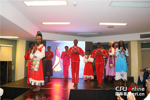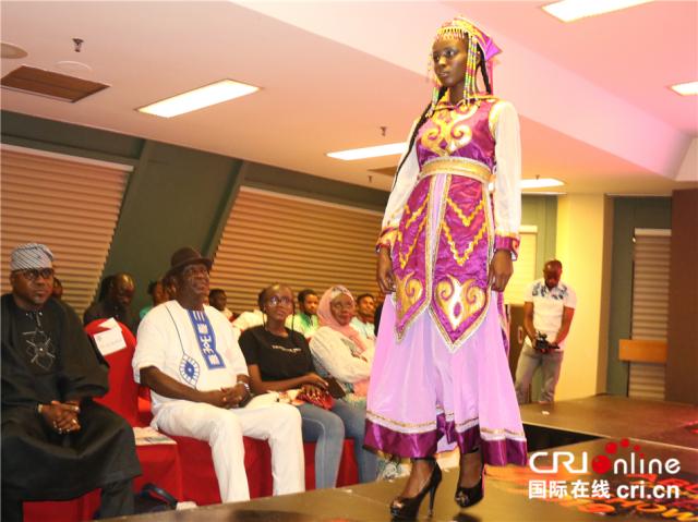当地模特在展示尼日利亚知名时装设计师设计的现代风和当地民族风时装的同时,还身着中国传统民族服装走上T台,别具特色的“中国风”惊艳全场。